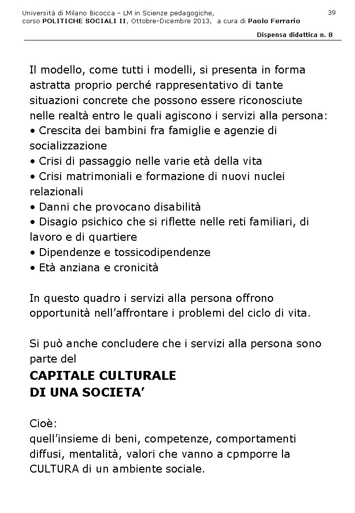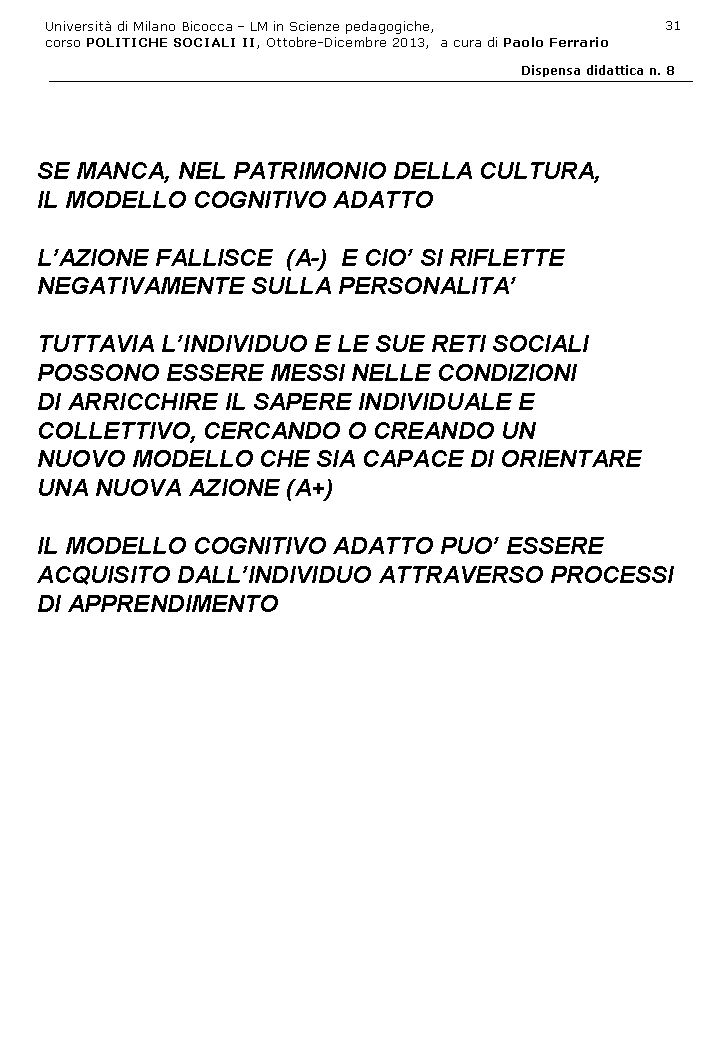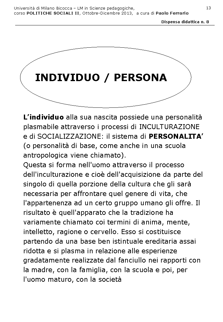 - scarica la Dispensa n. 8 in formato Dbf, il Paradigma antropologico Cultura/Individuo/Società