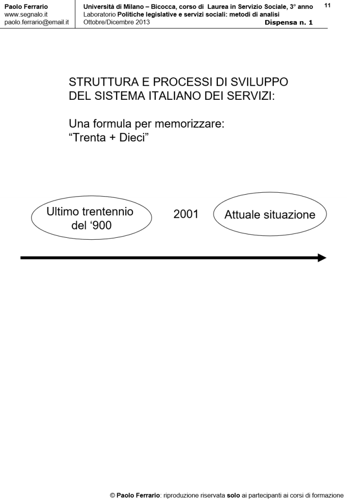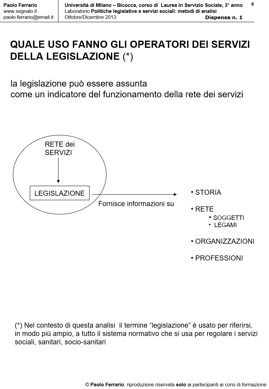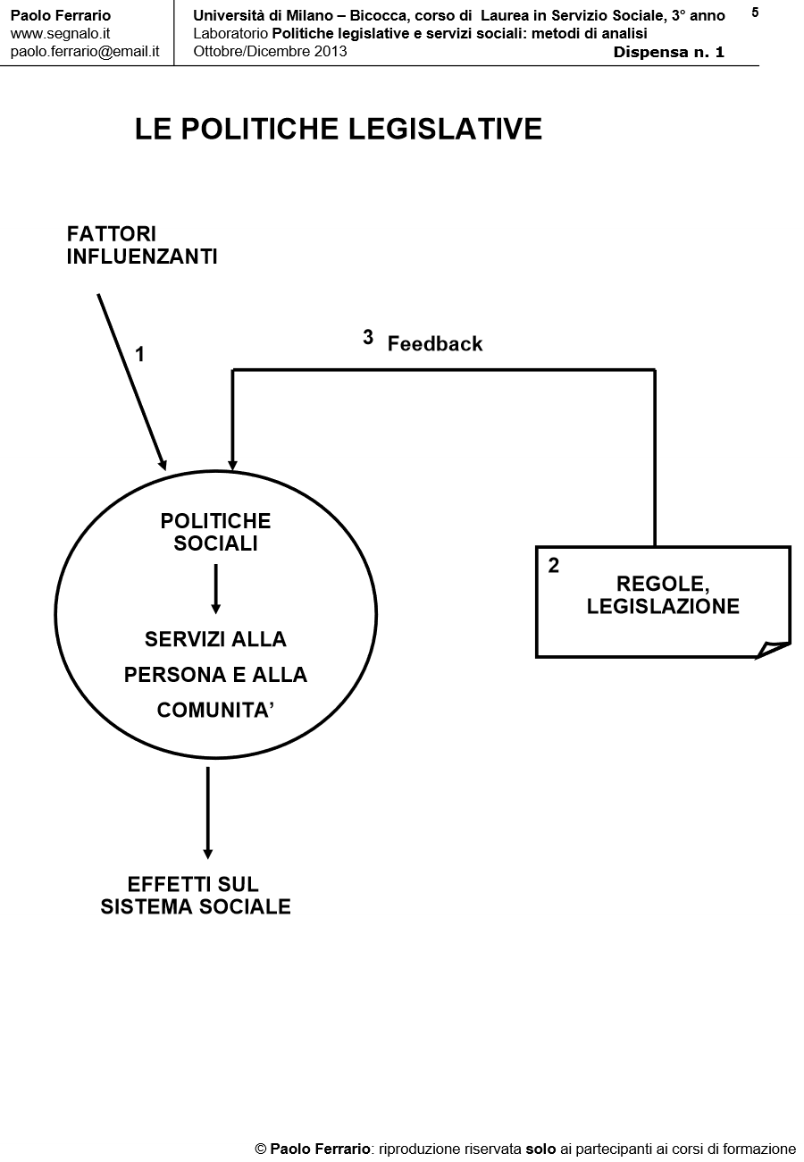 METODI DI ANALISI DELLE POLITICHE DEI SERVIZI, DISPENSA DIDATTICA n. 1, 4 Ottobre 2013. Università di Milano Bicocca/Corso di laurea in Servizio Sociale, Laboratorio POLITICHE LEGISLATIVE E SERVIZI SOCIALI. A cura di Paolo Ferrario