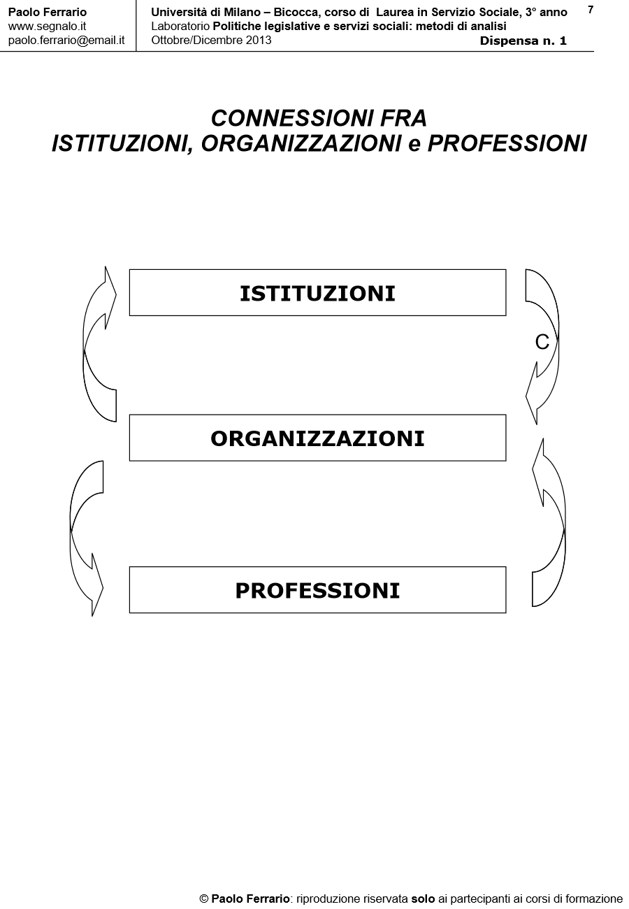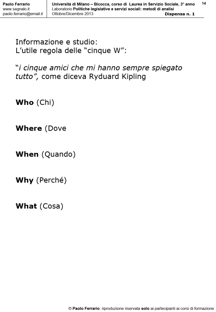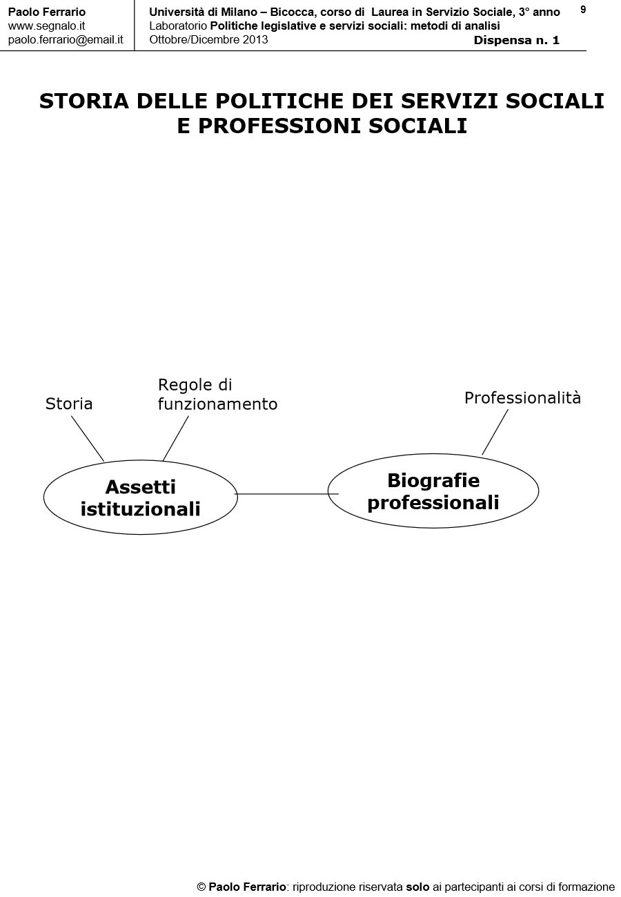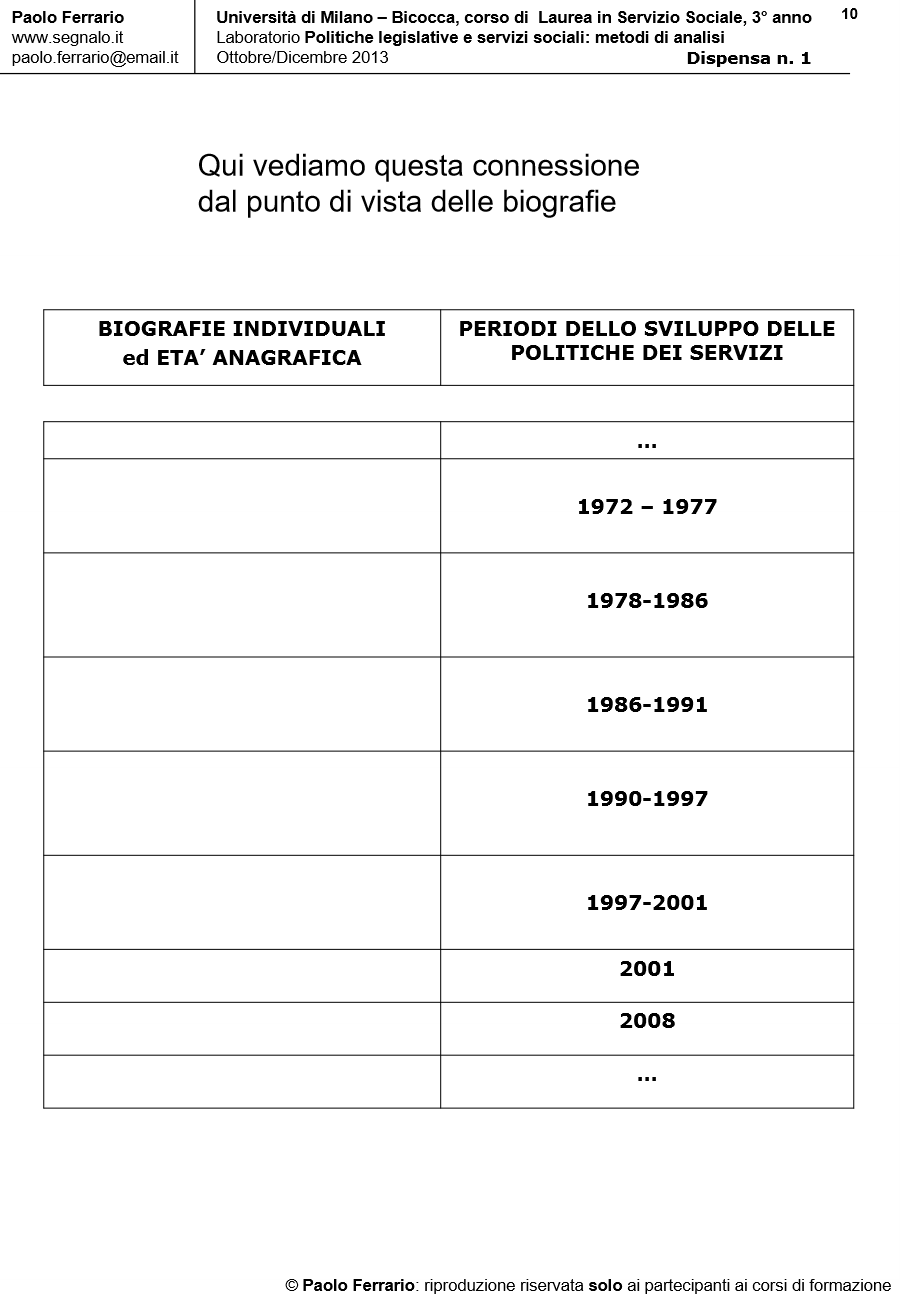 METODI DI ANALISI DELLE POLITICHE DEI SERVIZI, DISPENSA DIDATTICA n. 1, 4 Ottobre 2013. Università di Milano Bicocca/Corso di laurea in Servizio Sociale, Laboratorio POLITICHE LEGISLATIVE E SERVIZI SOCIALI. A cura di Paolo Ferrario