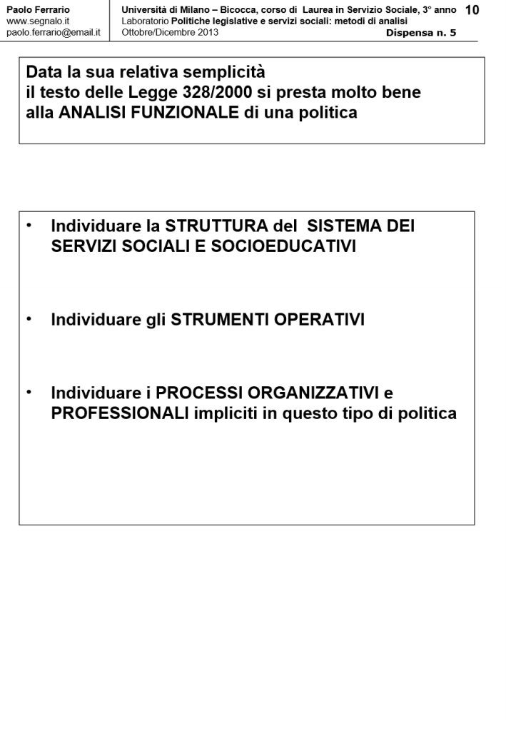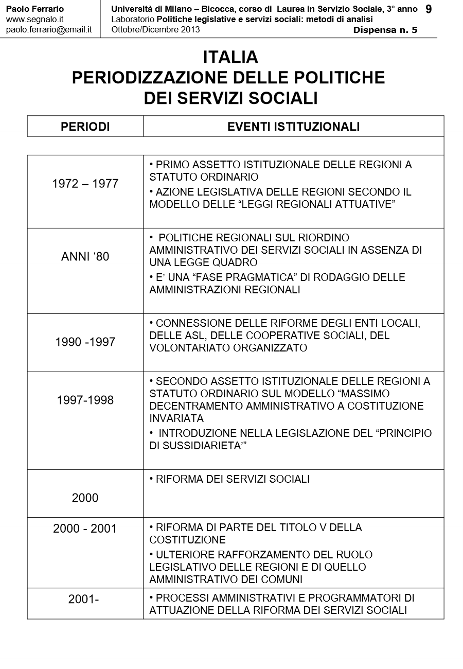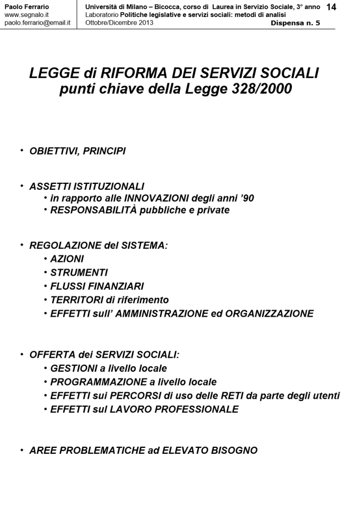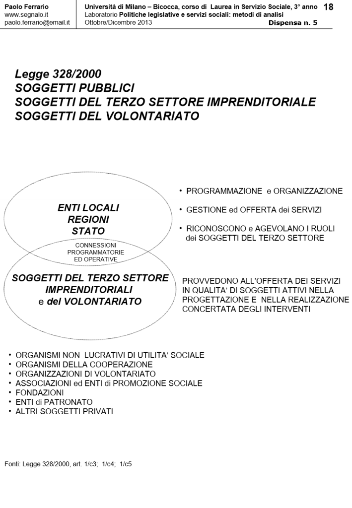 LA LEGGE DI RIFORMA DEI SERVIZI SOCIALI (LR 328/2000) alla luce della successiva RIFORMA COSTITUZIONALE (LC N. 3/2001), in Laboratorio POLITICHE LEGISLATIVE E SERVIZI SOCIALI: METODI DI ANALISI. DISPENSA DIDATTICA n. 5, a cura di Paolo Ferrario, 18 Ottobre 2013