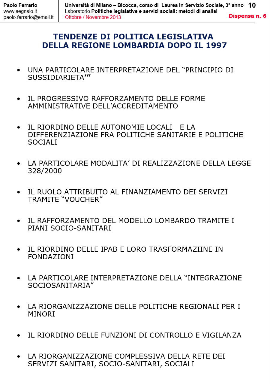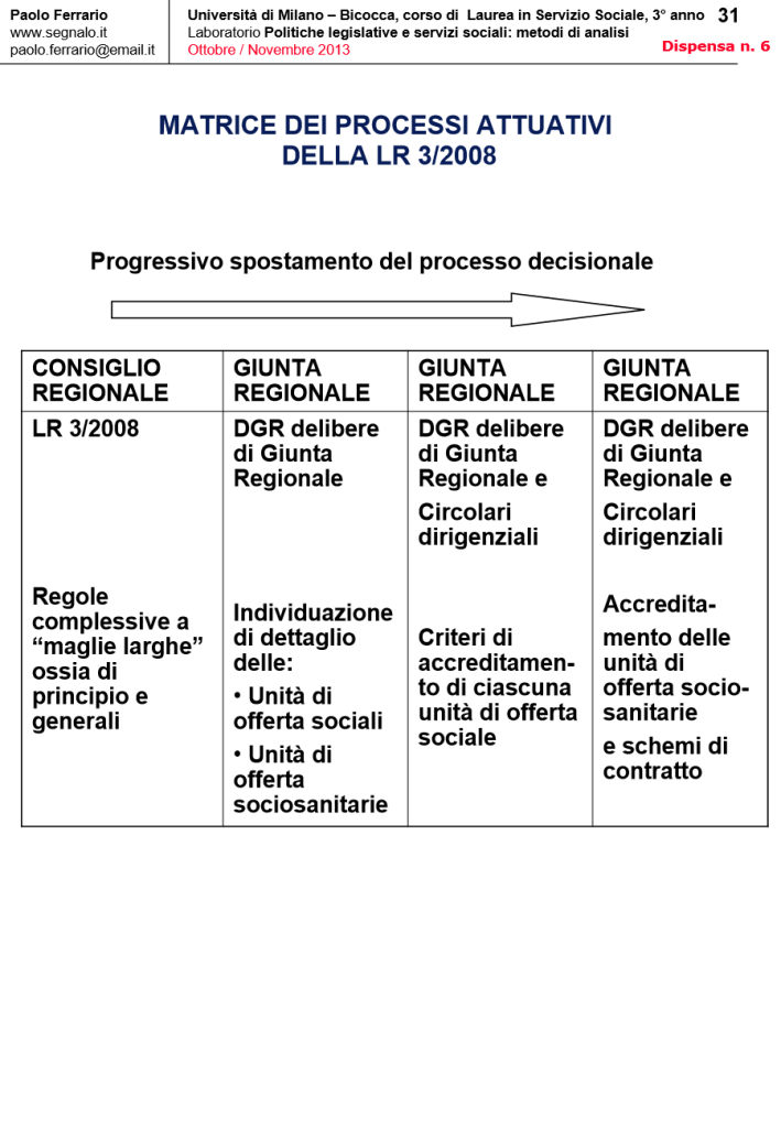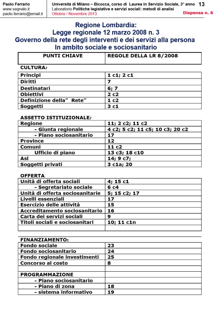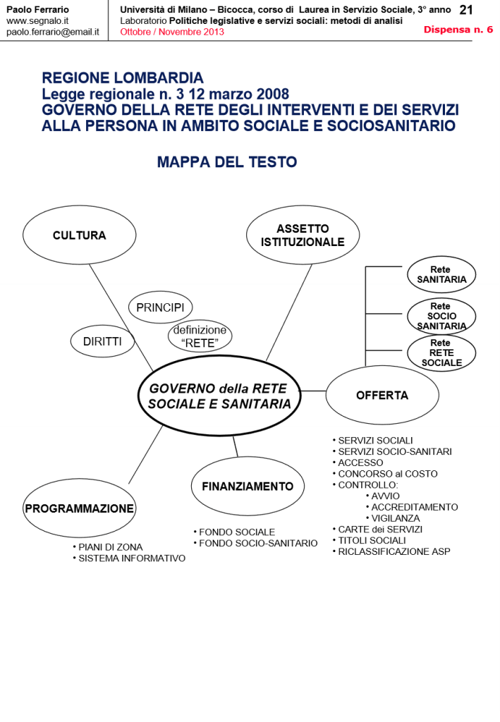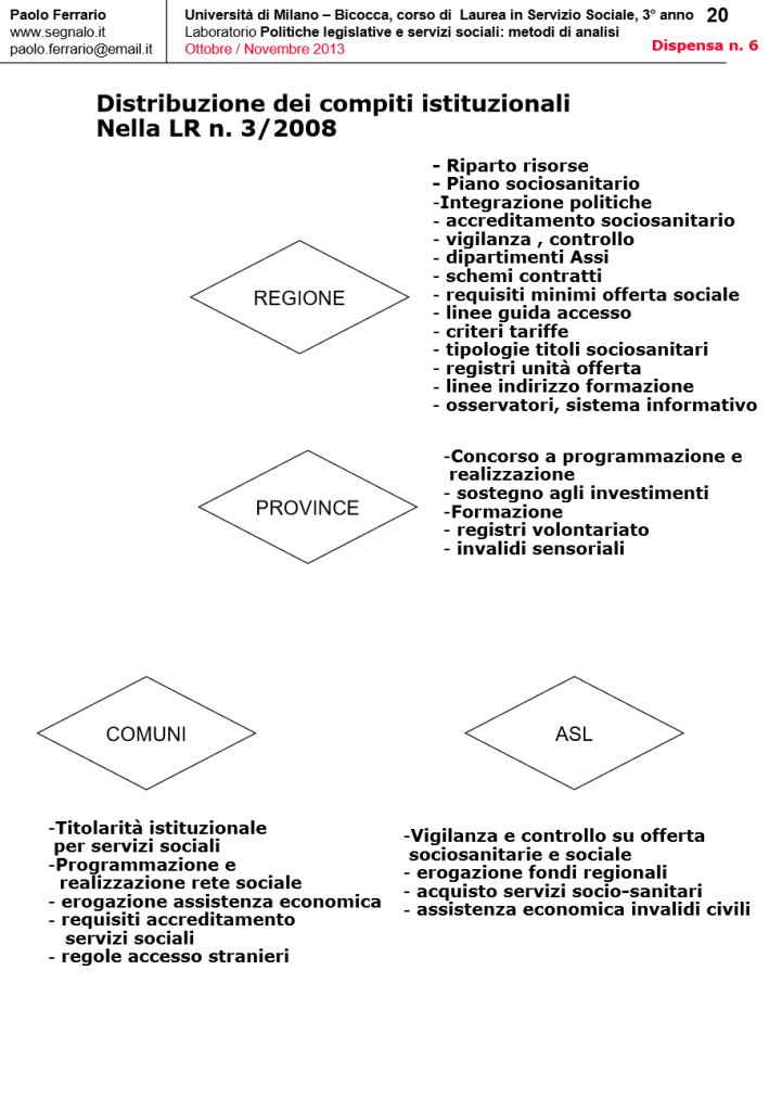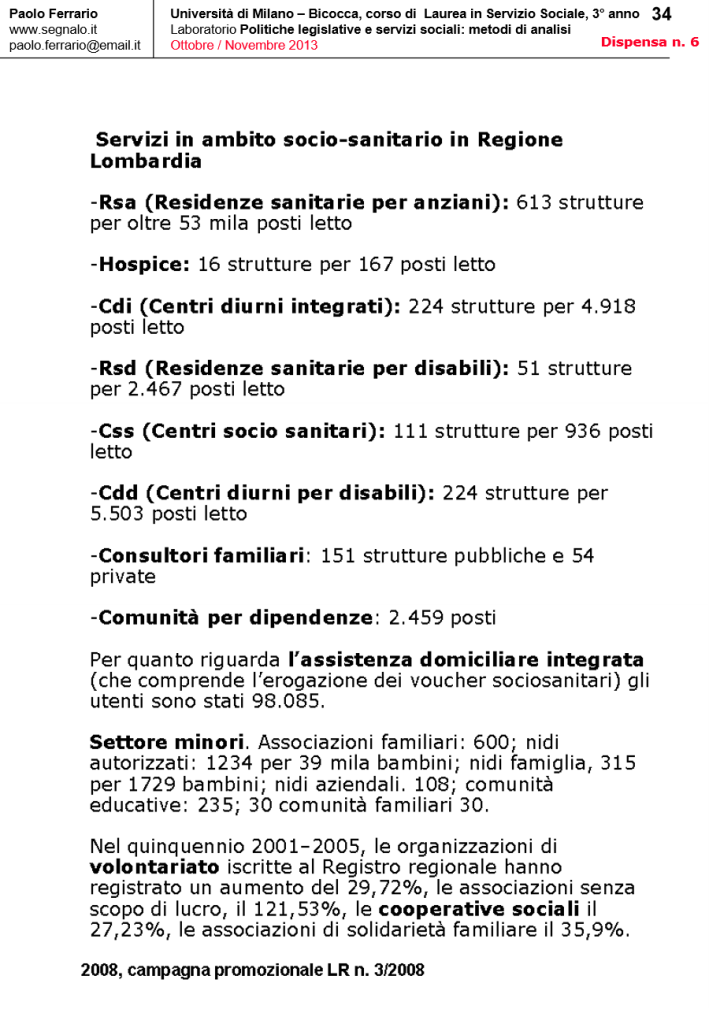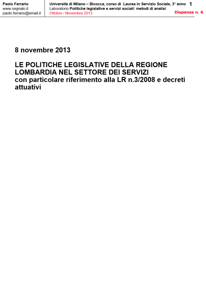 Le politiche legislative della Regione Lombardia nel settore dei servizi sanitari e sociali (con particolare riferimento alla LR n. 3/2008), in Laboratorio POLITICHE LEGISLATIVE E SERVIZI SOCIALI: METODI DI ANALISI. DISPENSA DIDATTICA n. 6, a cura di Paolo Ferrario, 18 Ottobre 2013