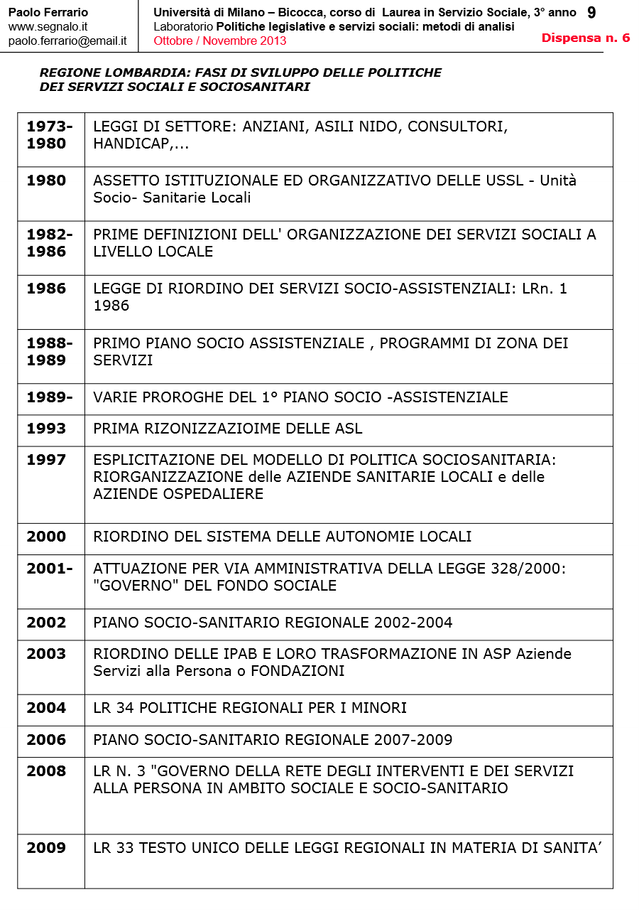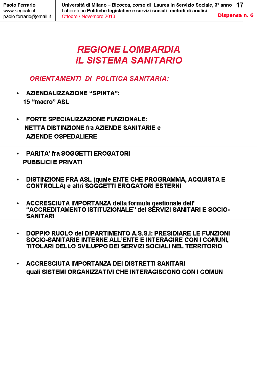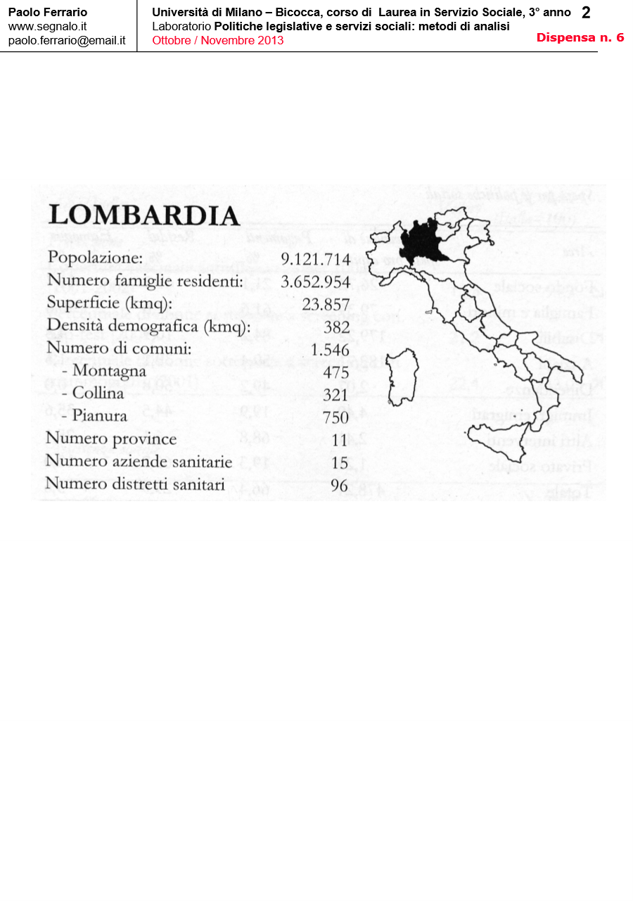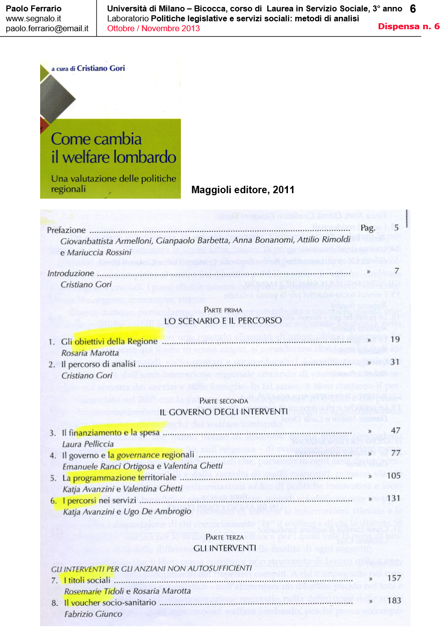 Le politiche legislative della Regione Lombardia nel settore dei servizi sanitari e sociali (con particolare riferimento alla LR n. 3/2008), in Laboratorio POLITICHE LEGISLATIVE E SERVIZI SOCIALI: METODI DI ANALISI. DISPENSA DIDATTICA n. 6, a cura di Paolo Ferrario, 18 Ottobre 2013