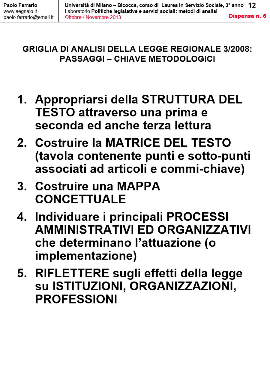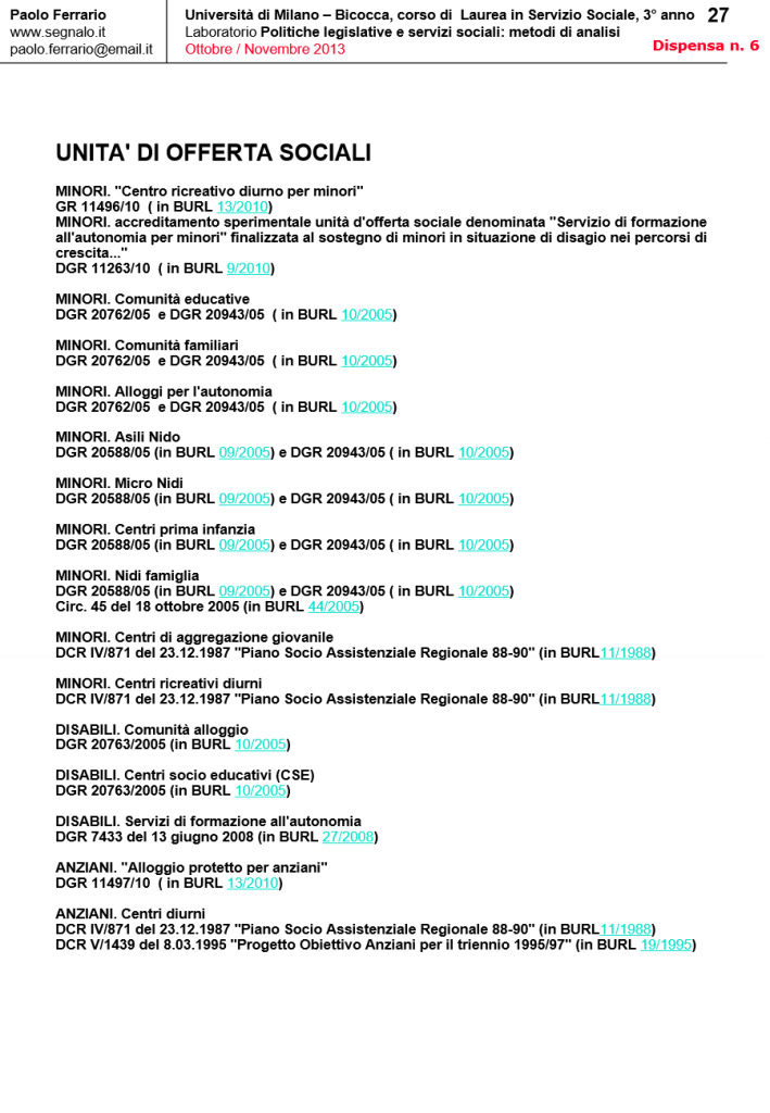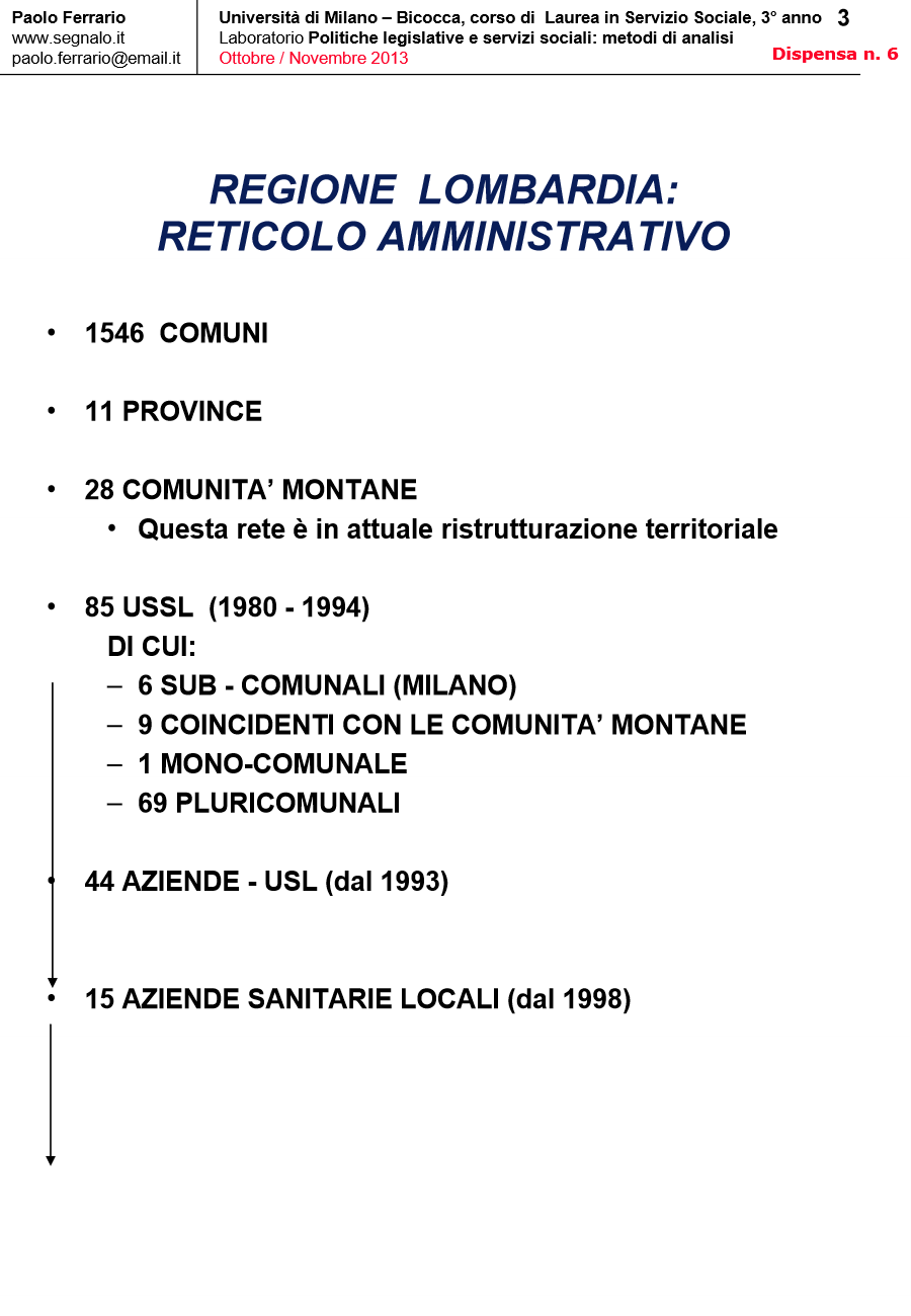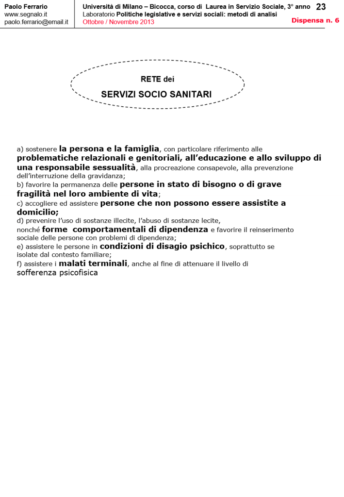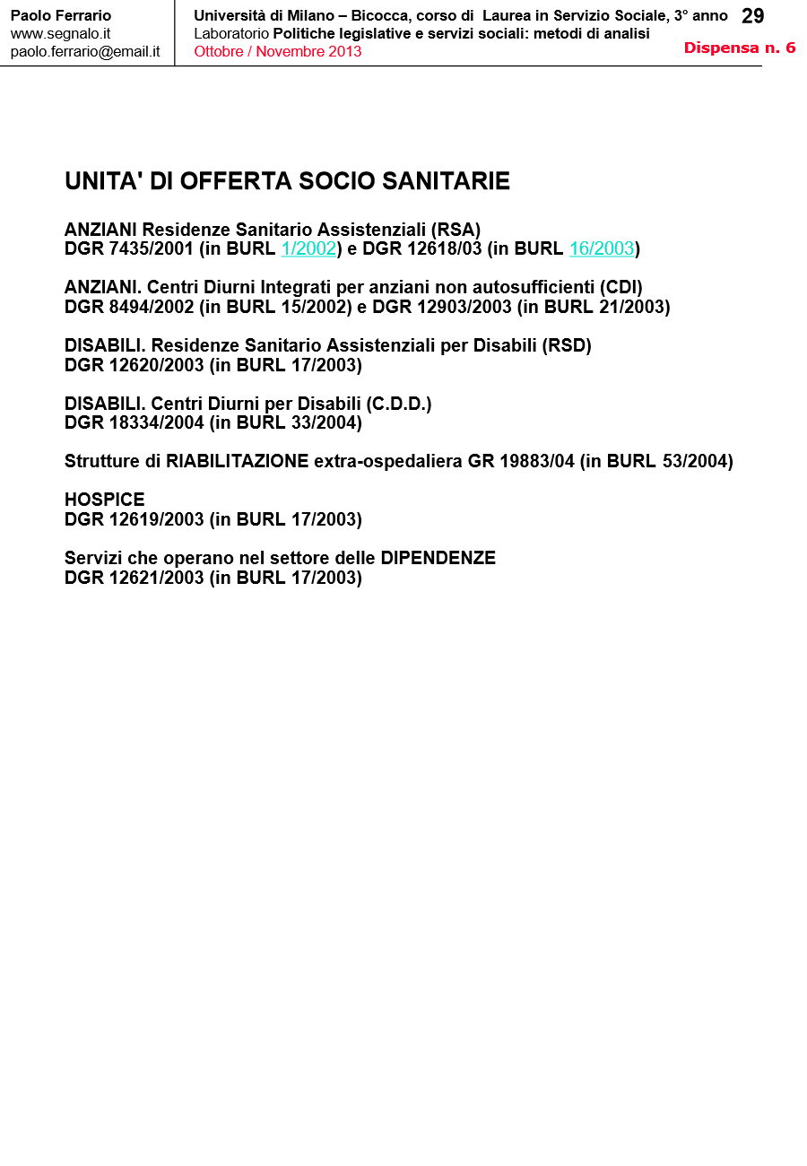 Le politiche legislative della Regione Lombardia nel settore dei servizi sanitari e sociali (con particolare riferimento alla LR n. 3/2008), in Laboratorio POLITICHE LEGISLATIVE E SERVIZI SOCIALI: METODI DI ANALISI. DISPENSA DIDATTICA n. 6, a cura di Paolo Ferrario, 18 Ottobre 2013
