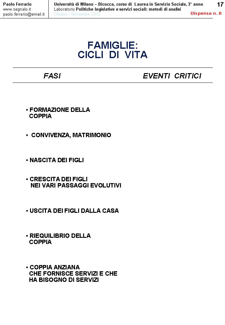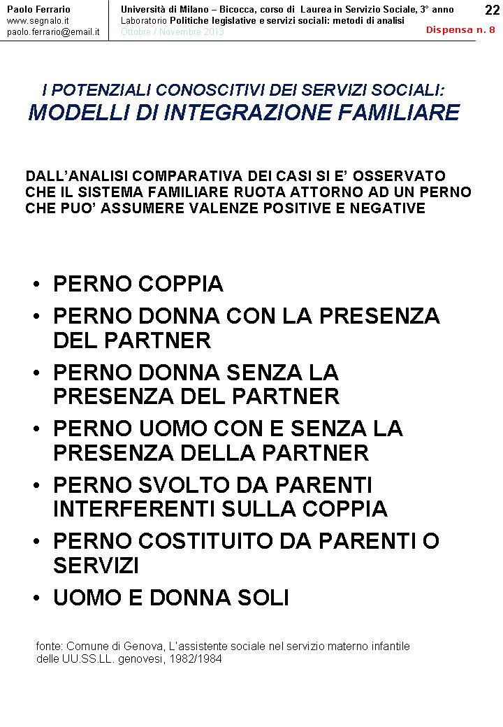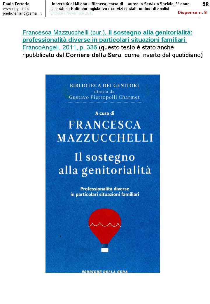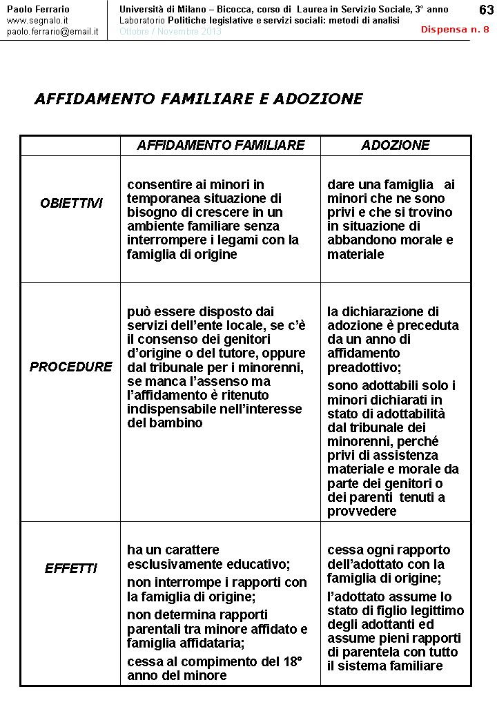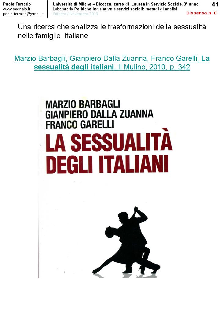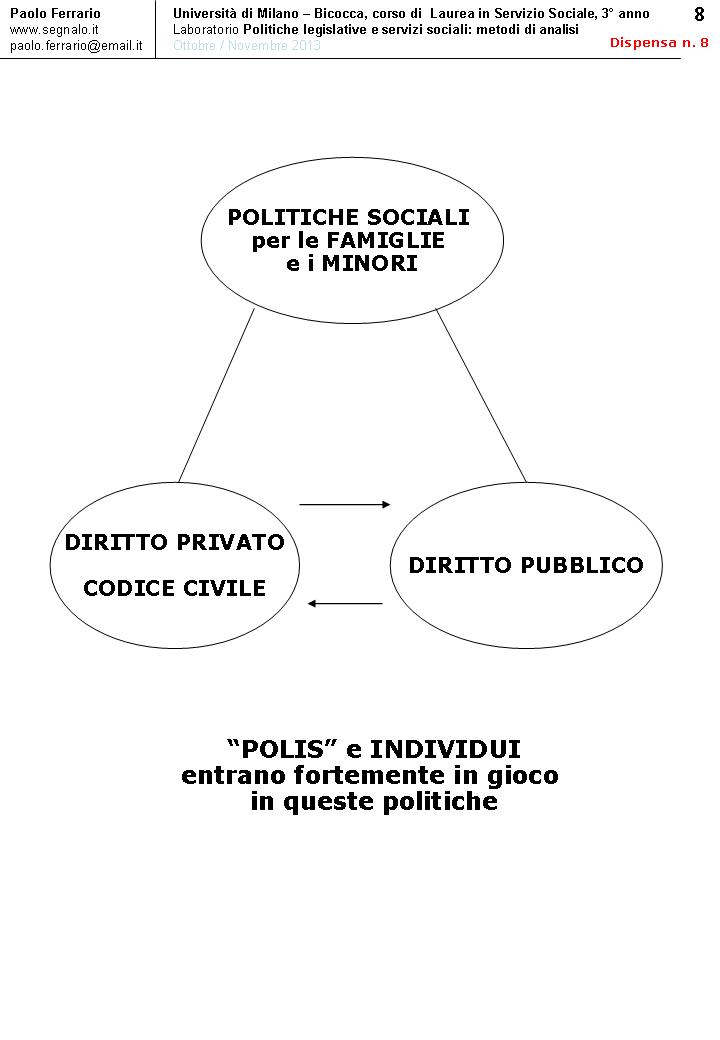 POLITICHE LEGISLATIVE PER LE COPPIE, LE FAMIGLIE E I MINORI: mutamenti socioculturali e regole legislative nel corso del tempo storico, dispensa didattica all’interno del Laboratorio Politiche legislative e servizi sociali: metodi di analisi, Università di Milano Bicocca/Laurea in Servizio Sociale, 22 novembre 2013