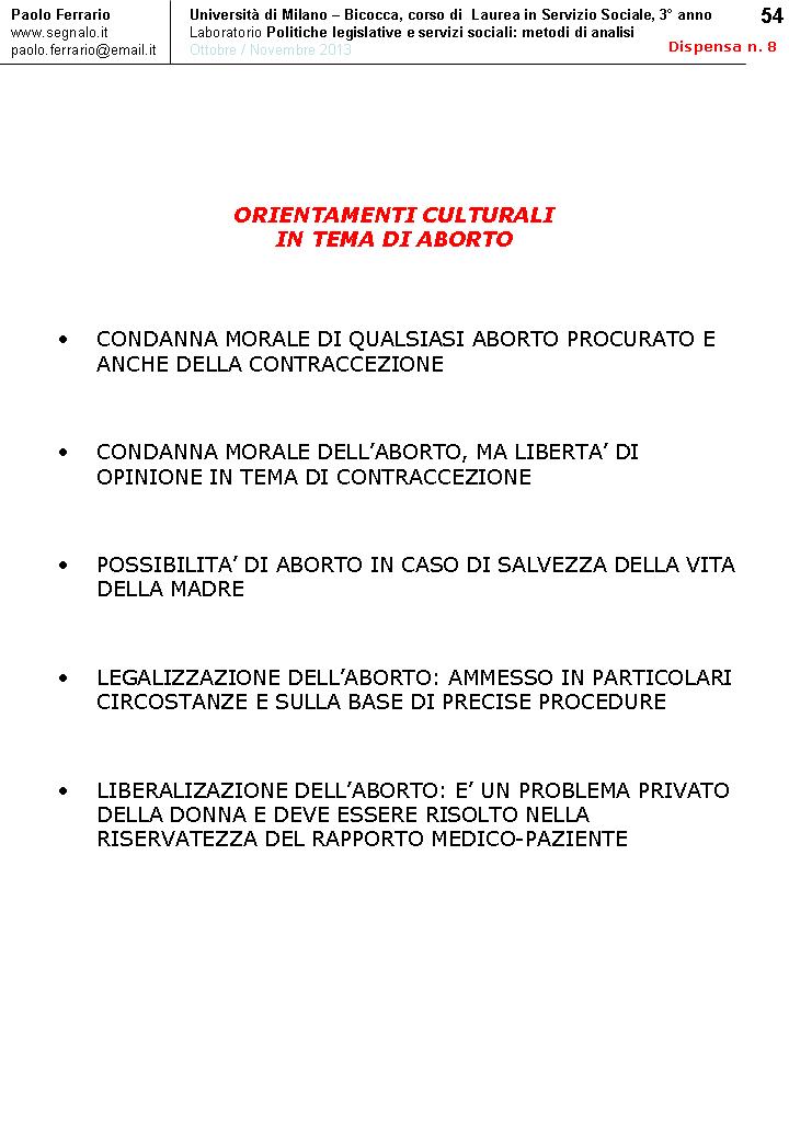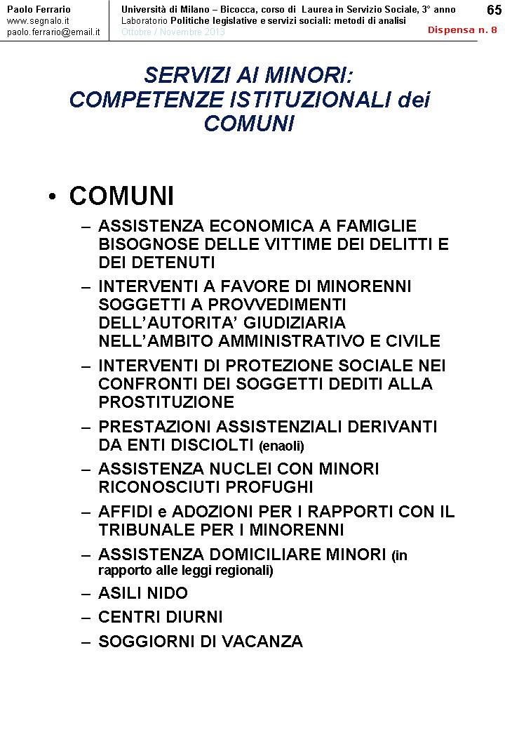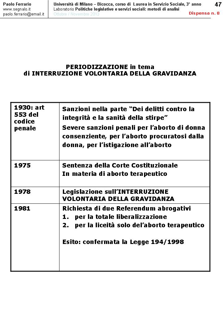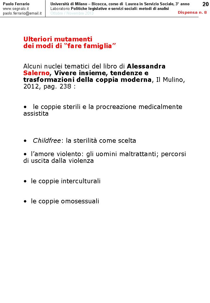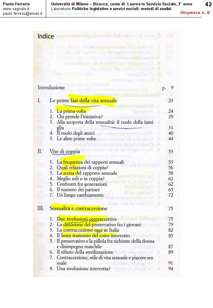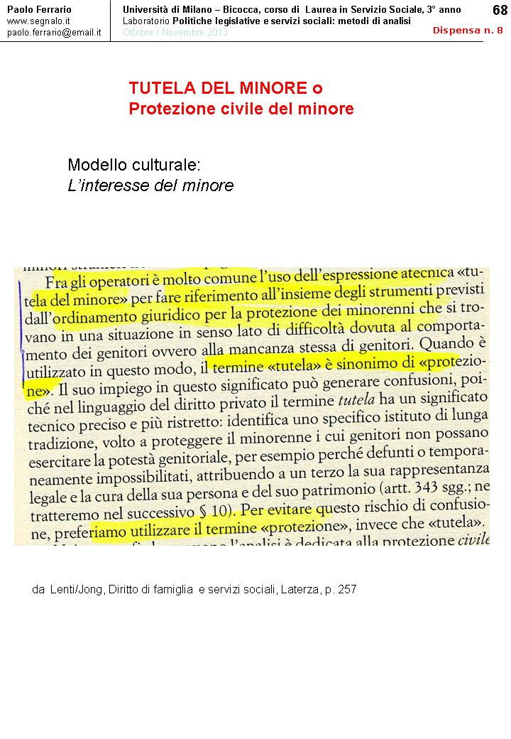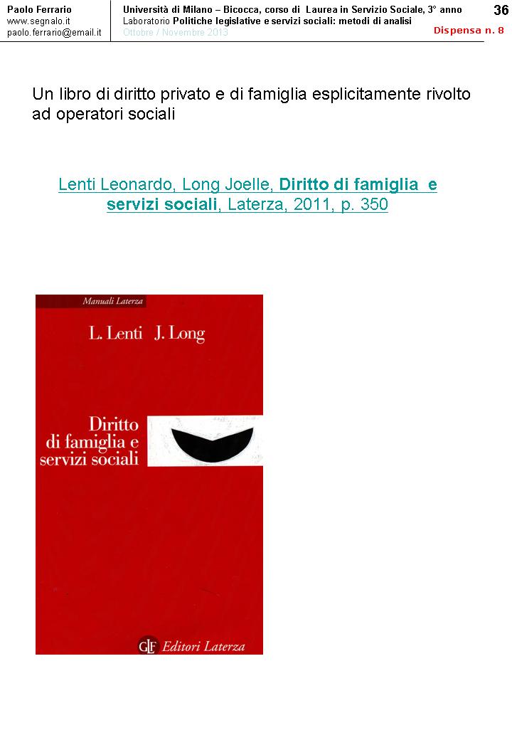 POLITICHE LEGISLATIVE PER LE COPPIE, LE FAMIGLIE E I MINORI: mutamenti socioculturali e regole legislative nel corso del tempo storico, dispensa didattica all’interno del Laboratorio Politiche legislative e servizi sociali: metodi di analisi, Università di Milano Bicocca/Laurea in Servizio Sociale, 22 novembre 2013