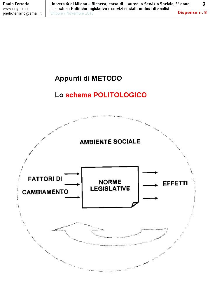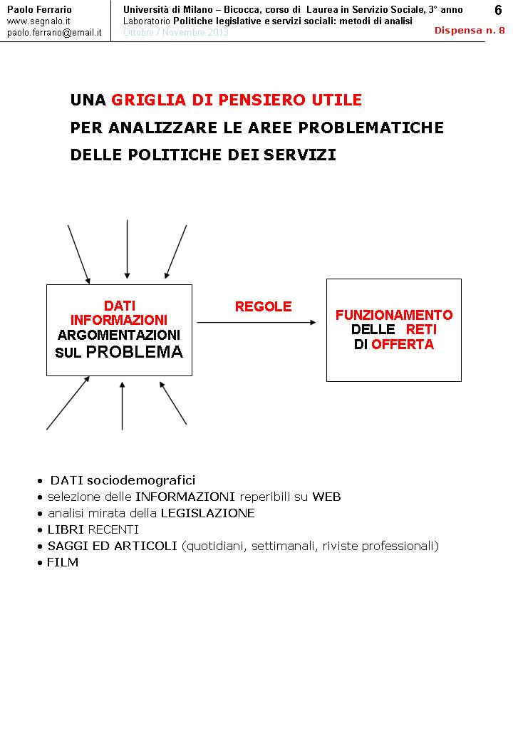 Aggiornamento bibliografico e documentale dei 18 capitoli del libro: Paolo Ferrario, POLITICHE SOCIALI e SERVIZI. Metodi di analisi e regole istituzionali, Carocci Faber editore/collana servizio sociale