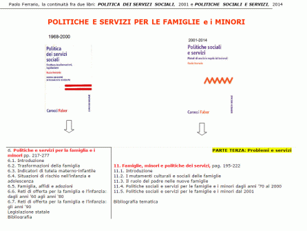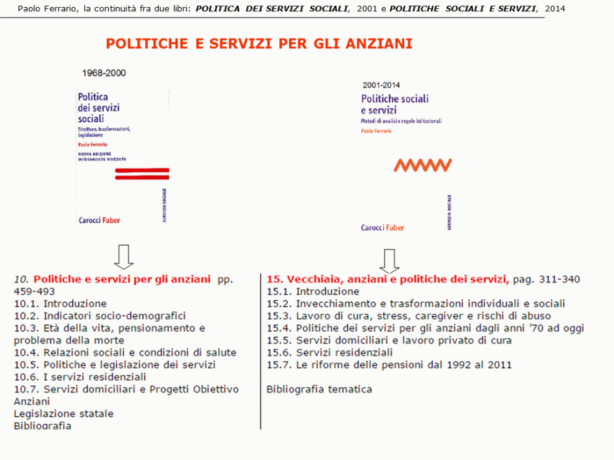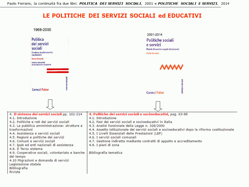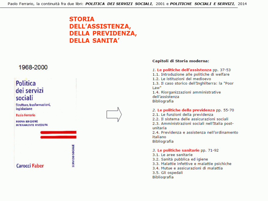 - il libro POLITICA DEI SERVIZI SOCIALI. Strutture, trasformazioni, legislazione, 2001 è dedicato all’analisi del sistema dei servizi sociali, sanitari e sociosanitari dal ‘600 alla fine del ‘900