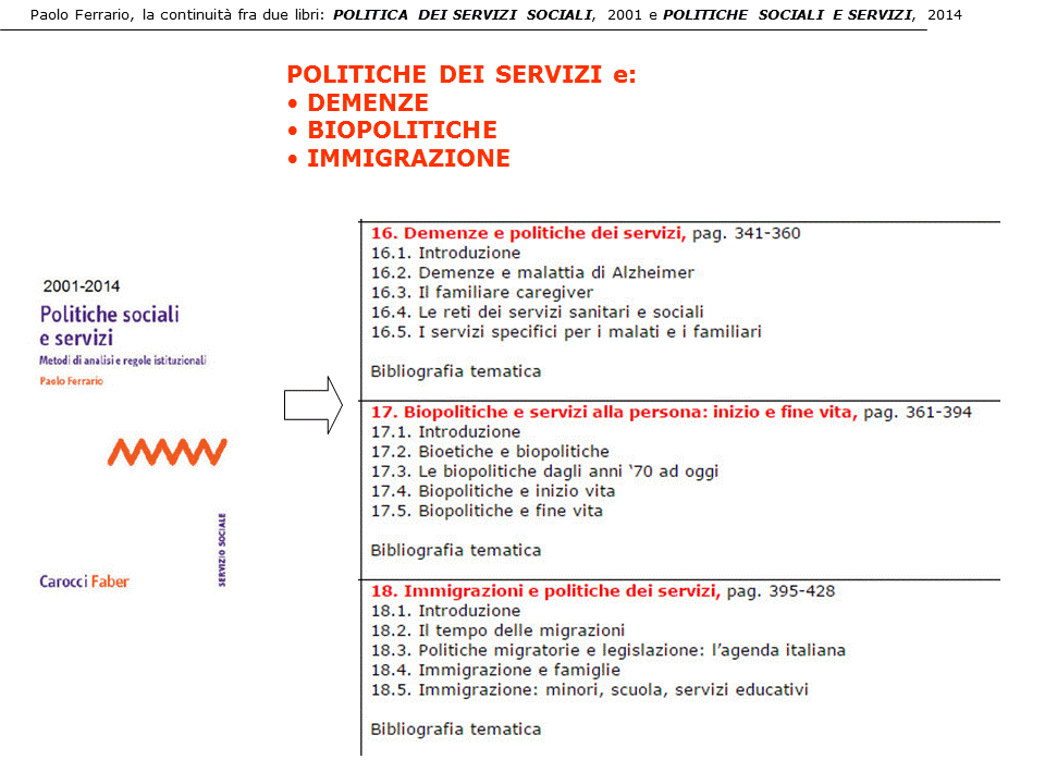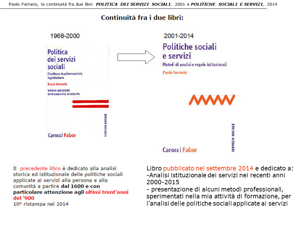 2. il libro POLITICHE SOCIALI E SERVIZI. Metodi di analisi e regole istituzionali, 2014, è dedicato all’analisi del sistema dei servizi sociali, sanitari e sociosanitari nel periodo 2000-2015